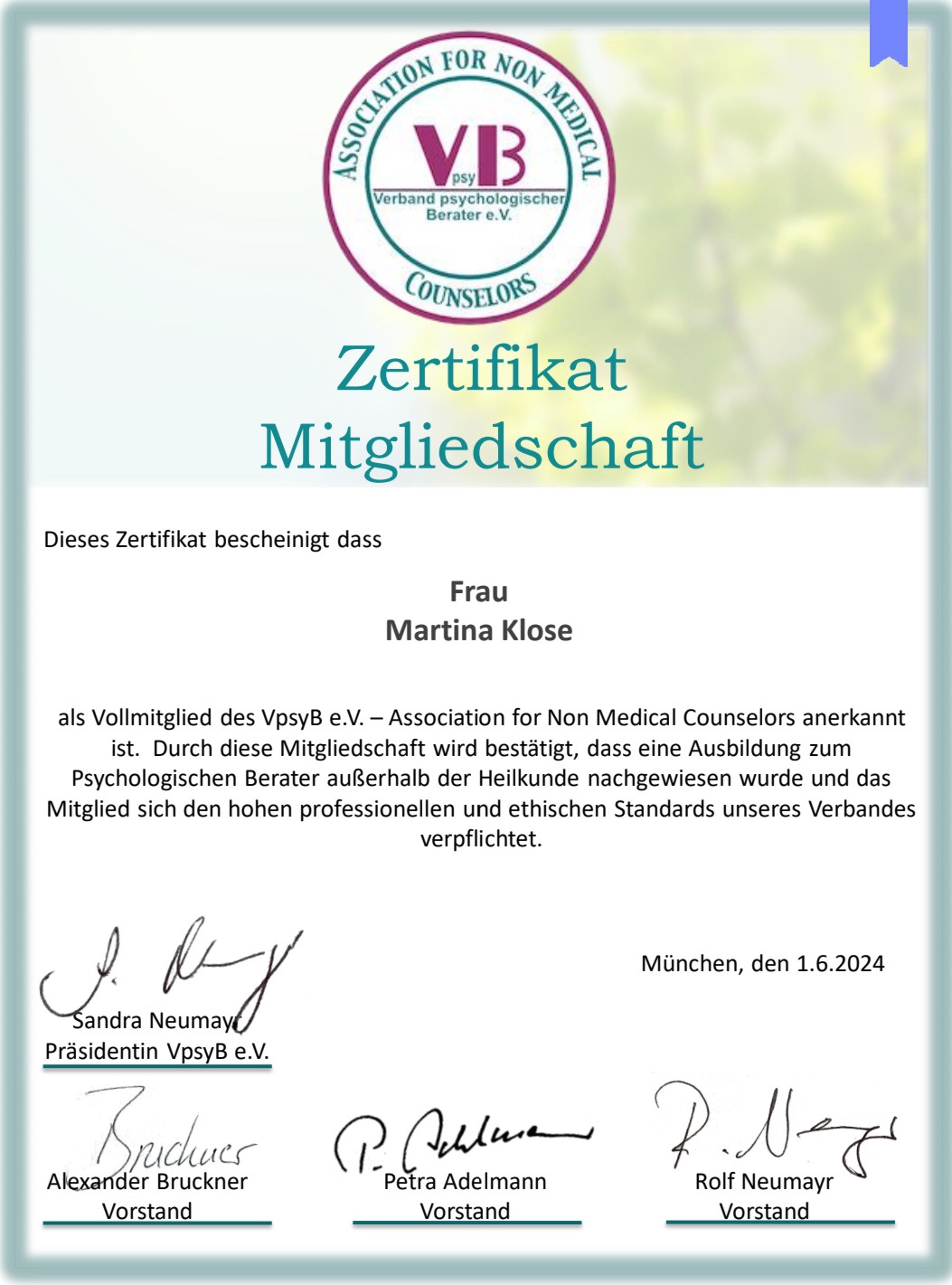 Mehrere Präsenzkurse für Selbsterfahrung und Tools in Konfliktreduktion, Stressmanagement, eigene Stärken erkennen und nutzen, Resilienz, Hypnocoaching, kindliche Bedürfnisse, soziale Kompetenz, achtsame Kommunikation, Begleitung in der Trauer, hochsensible Personen (HSP), lösungsorientierter Umgang mit Konflikt/Gewalt in der Familie haben meine persönlichen Kenntnisse und Erfahrungen vertieft, sodass sich Menschen mit den verschiedensten Anliegen gerne Hilfe suchend an mich wenden können.
